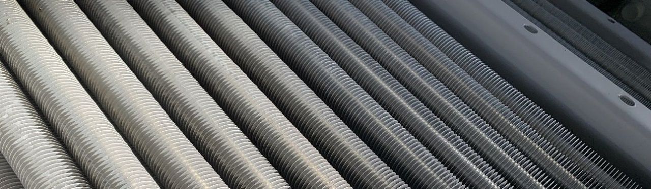 Ребро-ленточное оребрение нанесено методом высокого давления: алюминий «врезается» в сталь, образуя металлургическую связь. Это уменьшает контактное тепловое сопротивление на 8–12 % по сравнению с простым механическим навивом.