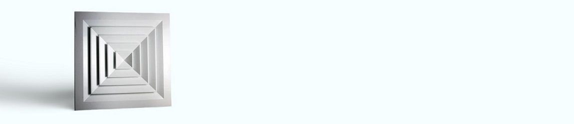Главная особенность диффузора — четырёхстороннее распределение воздушного потока. Воздух подаётся или удаляется через направляющие лопатки, равномерно рассеиваясь по помещению. Это: